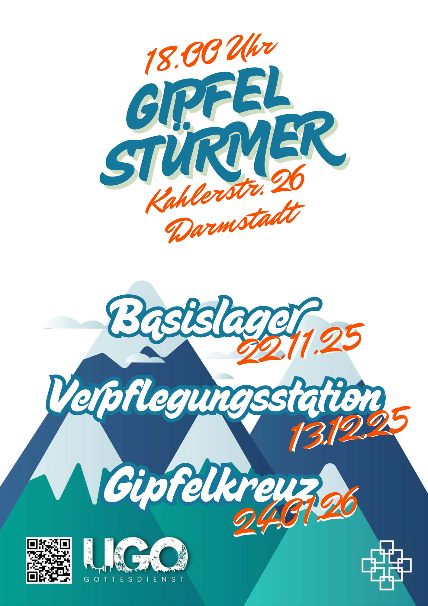Einmal im Monat feiern wir am Samstagabend von 18:00 bis 19:30 Uhr einen UGO - Gottesdienst. Der UGO wird zusammen mit Jugendlichen aus dem Nachbarschaftsraum gestaltet. Er schafft auf moderne Weise die Möglichkeit, Gott durch Message, Lobpreis, Theater, Videoclips und Segnungsgebet zu begegnen. Abgerundet wird das Ganze durch einen Snack im Anschluss.